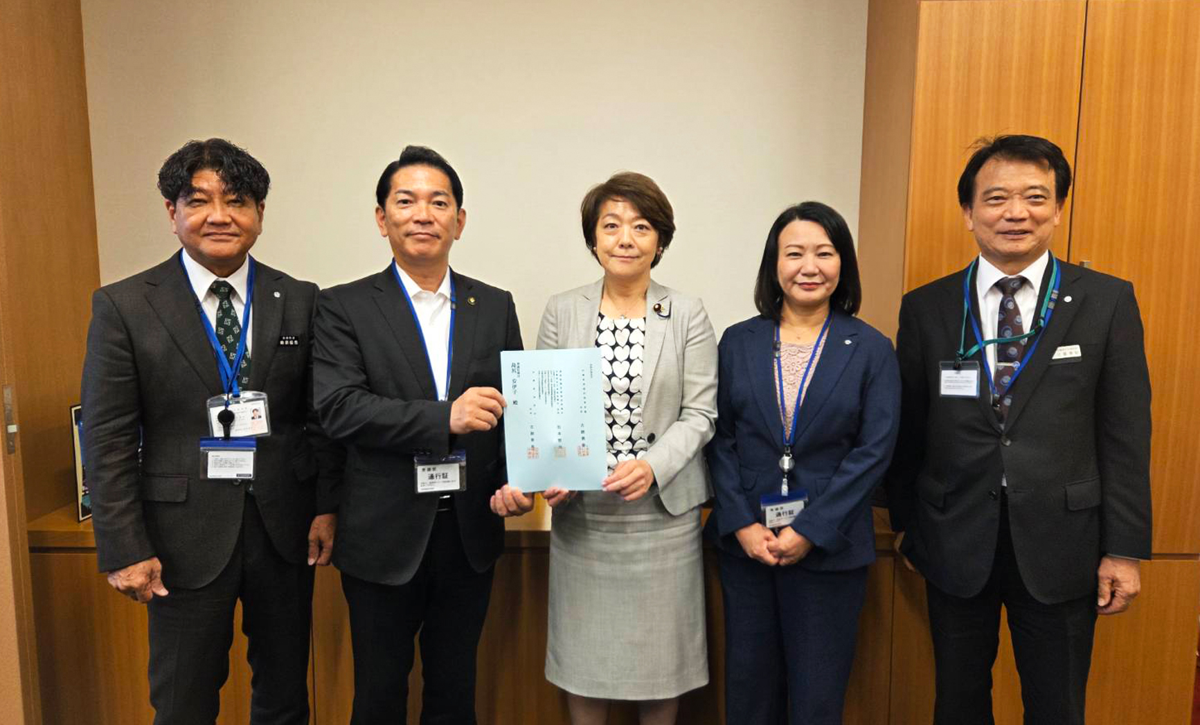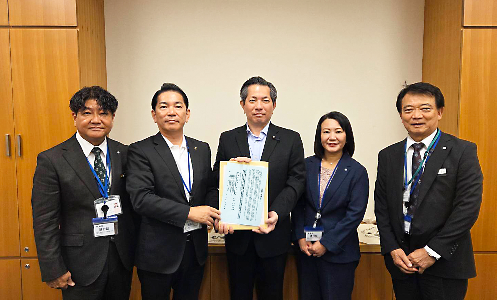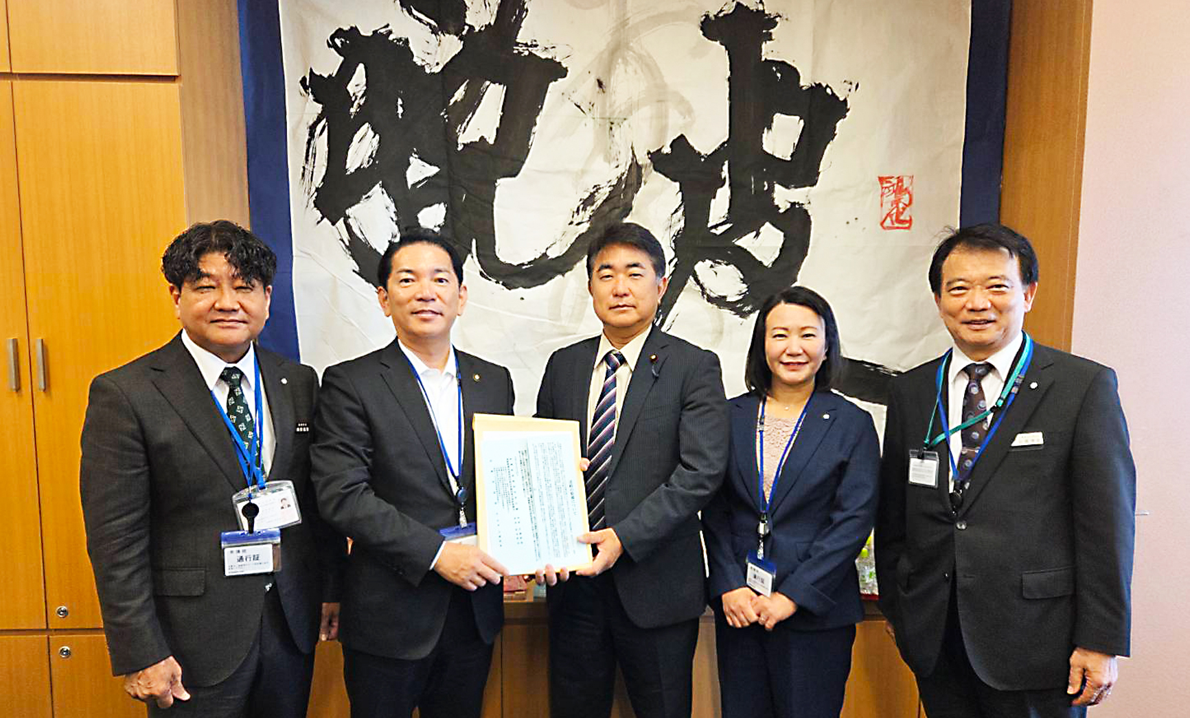 山川 仁 衆議院議員へ手交。